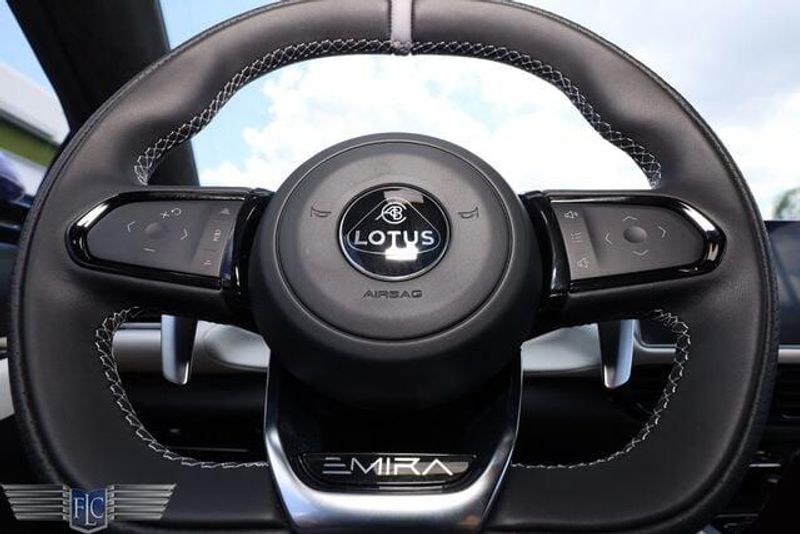 This 2025 Lotus Emira 2dr V6 Coupe features a 3.5L V6 CYLINDER 6cyl Gasoline engine. It is equipped with a 6 Speed Automatic transmission. The vehicle is Atlantis Blue with a Ice Gray Leather interior. It is offered with a full factory warranty. - Air Conditioning, Climate Control, Cruise Control, Tinted Windows, Power Steering, Power Windows, Power Mirrors, Leather Steering Wheel, Power Drivers Seat, Power Passenger Seat, Memory Seat Position, Clock, Tachometer, Telescoping Steering Wheel, Steering Wheel Radio Controls, Driver Airbag, Passenger Airbag, Side Airbags, Keyless Entry, Security System, Rear Defogger, Intermittent Wipers, AM/FM, Leather Interior Surface, Aux. Audio Input, Bluetooth, Center Arm Rest, Cup Holders, Daytime Running Lights, Front Heated Seats, Heated Mirrors, Navigation System, Overhead Console, Parking Sensors, Rear Spoiler, Rear Spoiler, Remote Fuel Door, Remote Trunk Lid, Reverse Camera, Roll Stability Control, Tire Pressure Monitor, Vanity Mirrors - Contact Sales Team at 954-788-9600 or info@fortlauderdalecollection.com for more information. -