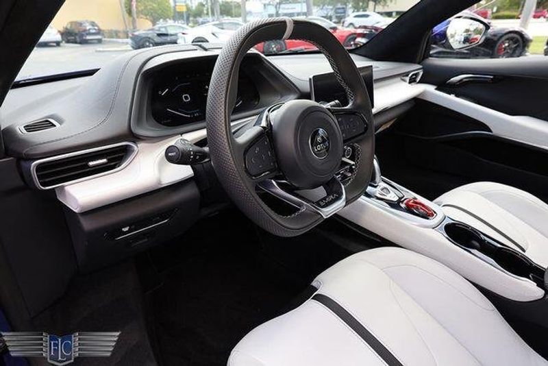 This 2025 Lotus Emira 2dr V6 Coupe features a 3.5L V6 CYLINDER 6cyl Gasoline engine. It is equipped with a 6 Speed Automatic transmission. The vehicle is Atlantis Blue with a Ice Gray Leather interior. It is offered with a full factory warranty. - Air Conditioning, Climate Control, Cruise Control, Tinted Windows, Power Steering, Power Windows, Power Mirrors, Leather Steering Wheel, Power Drivers Seat, Power Passenger Seat, Memory Seat Position, Clock, Tachometer, Telescoping Steering Wheel, Steering Wheel Radio Controls, Driver Airbag, Passenger Airbag, Side Airbags, Keyless Entry, Security System, Rear Defogger, Intermittent Wipers, AM/FM, Leather Interior Surface, Aux. Audio Input, Bluetooth, Center Arm Rest, Cup Holders, Daytime Running Lights, Front Heated Seats, Heated Mirrors, Navigation System, Overhead Console, Parking Sensors, Rear Spoiler, Rear Spoiler, Remote Fuel Door, Remote Trunk Lid, Reverse Camera, Roll Stability Control, Tire Pressure Monitor, Vanity Mirrors - Contact Sales Team at 954-788-9600 or info@fortlauderdalecollection.com for more information. -