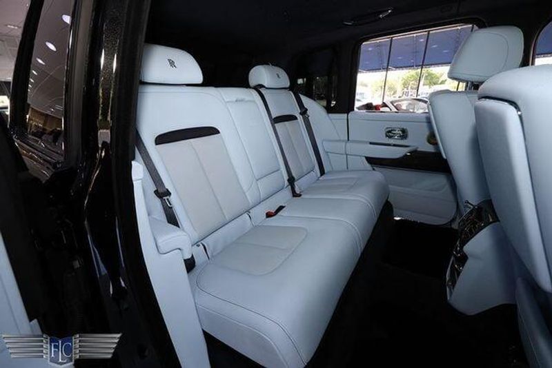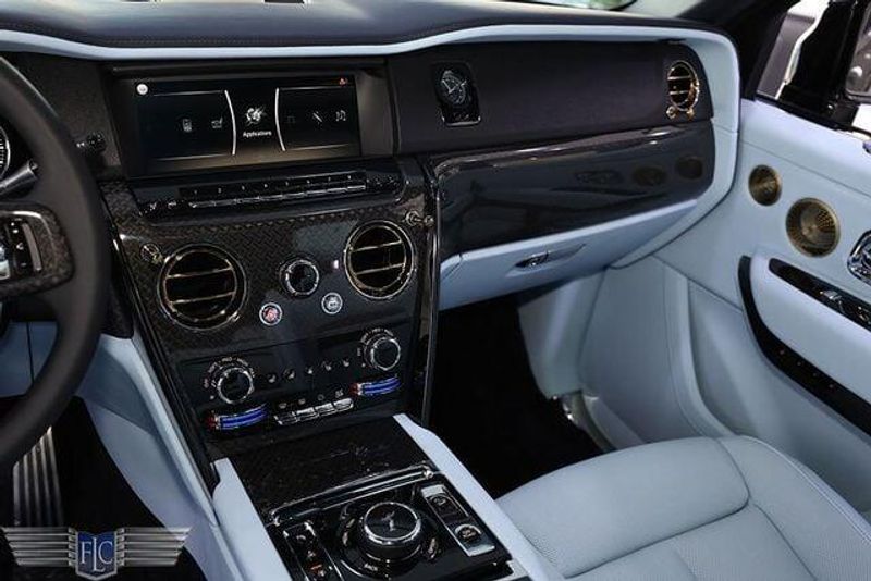 This 2023 Rolls-Royce Cullinan 4dr Black Badge Sport Utility features a 6.7L 12 CYLINDER 12cyl Gasoline engine. It is equipped with a 8 Speed Automatic transmission. The vehicle is Black Diamond with a Charles Blue Leather interior. - Climate Control, Dual Zone Climate Control, Cruise Control, Tinted Windows, Power Steering, Power Mirrors, Leather Steering Wheel, Rear Air Conditioning, Clock, Telescoping Steering Wheel, Steering Wheel Radio Controls, Sunroof, Moonroof, Driver Airbag, Passenger Airbag, Side Airbags, Security System, Rear Defogger, Intermittent Wipers, AM/FM, CD Player, CD Changer, Anti-Theft, Leather Interior Surface, Adaptive headlights, Air Conditioned Seats, Aux. Audio Input, Bluetooth, Body Side Moldings, Carbon Fiber Trim, Carpeted Floor Mats, Child Proof Door Locks, Daytime Running Lights, Front AC Seats, Heads Up Display, Heated Mirrors, Overhead Console, Parking Sensors, Power Lift Gate, Premium Sound, Rear Heated Seats , Rear Spoiler, Rear Spoiler, Remote Fuel Door, Reverse Camera, Roll Stability Control, Side Curtain Airbags, Sliding Rear Window, Tire Pressure Monitor, Vanity Mirrors - Contact Sales Team at 954-788-9600 or info@fortlauderdalecollection.com for more information. -