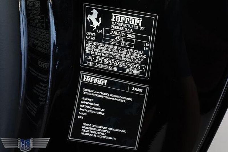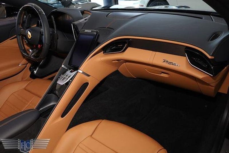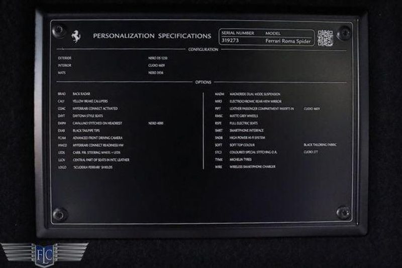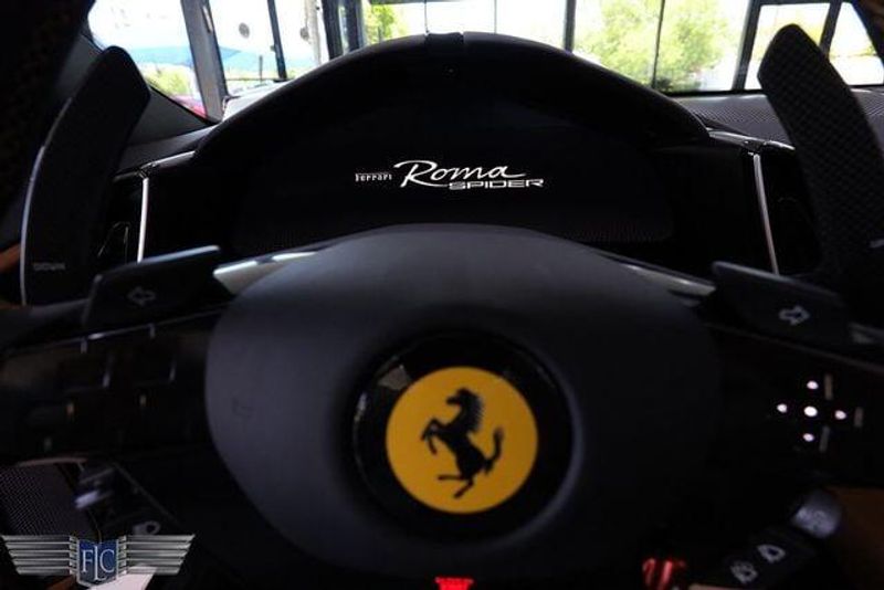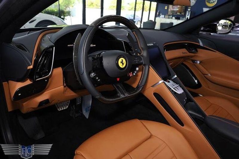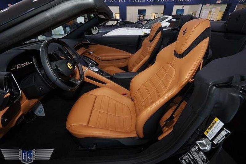 This 2025 Ferrari Roma Spider 2dr Convertible features a 3.9L 8 CYLINDER 8cyl Gasoline engine. It is equipped with a 8 Speed Automatic transmission. The vehicle is Nero with a Cuoio Leather interior. - Air Conditioning, Climate Control, Dual Zone Climate Control, Cruise Control, Power Steering, Power Windows, Power Mirrors, Leather Steering Wheel, Memory Seat Position, Clock, Tachometer, Telescoping Steering Wheel, Steering Wheel Radio Controls, Driver Airbag, Passenger Airbag, Side Airbags, Security System, ABS Brakes, Rear Defogger, Intermittent Wipers, AM/FM, Leather Interior Surface, Aux. Audio Input, Bluetooth, Carpeted Floor Mats, Center Arm Rest, Cup Holders, Daytime Running Lights, Front Heated Seats, Heated Mirrors, Navigation System, Overhead Console, Rear Fog Lamps, Rear Spoiler, Rear Spoiler, Remote Fuel Door, Remote Trunk Lid, Roll Stability Control, Tire Pressure Monitor - Contact Sales Team at 954-788-9600 or info@fortlauderdalecollection.com for more information. -